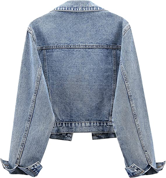 - Features ripped design,wash distressed,boyfriend, stand collar.